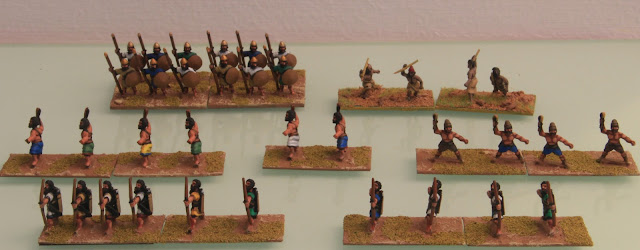 As we explore further expansion of our Macedonian and Punic War campaign, we realised that we already own small "clusters" of figures which can be recruited: fg has several bases of Numidian horse and foot painted, and Martin has figures from his Sassanids which can be used. On my part I found that some of the figures from my Hittite Empire army can be used as African or Asiatic troops.